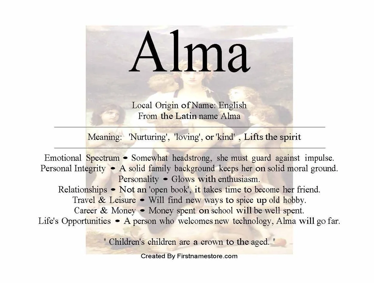 Alma, meaning “soul” in Spanish, is the nurturing soul. Though impulsive, she has a solid moral ground and is known for lifting spirits with her glowing enthusiasm. She goes to great lengths to protect herself and her loved ones.
